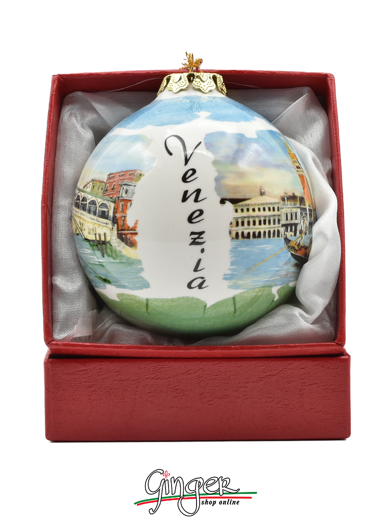CHRISTMAS BALL Ceramic - Venice: Rialto Bridge and St. Mark's Square with Gondola
