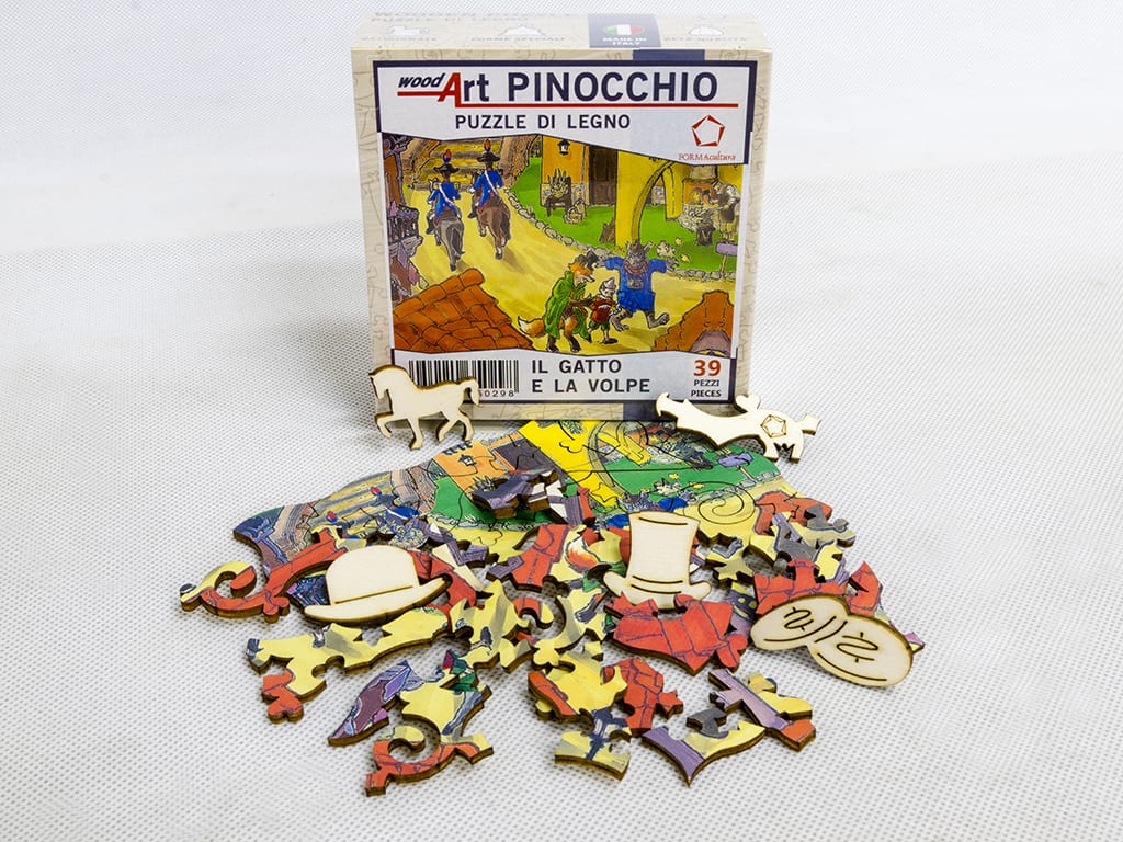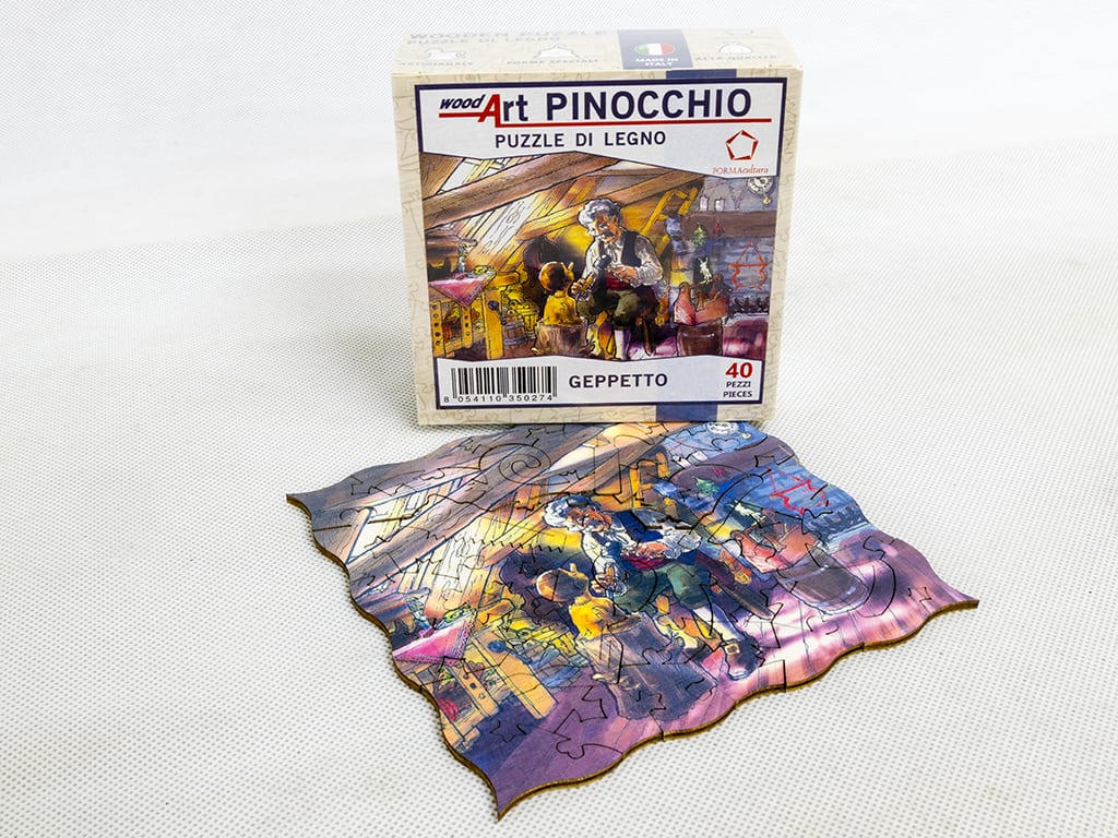 Wooden puzzle with unique and special tiles measuring 13.5 x 12.5 cm (5,3 x 4,9 in.)