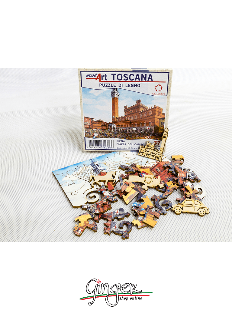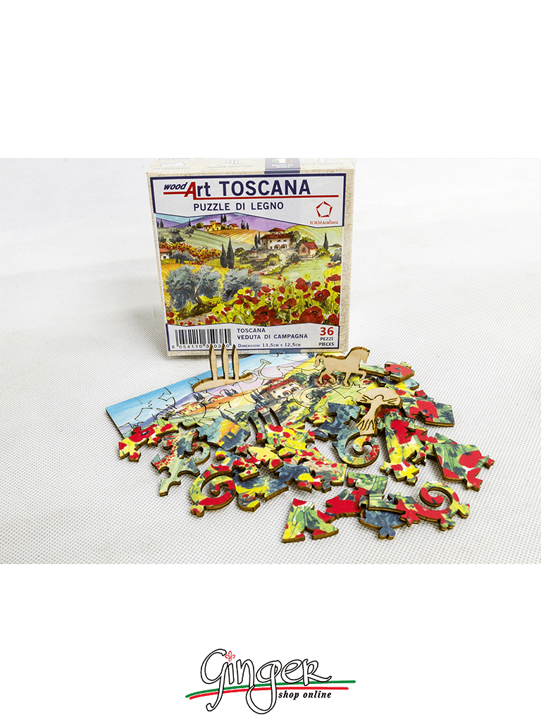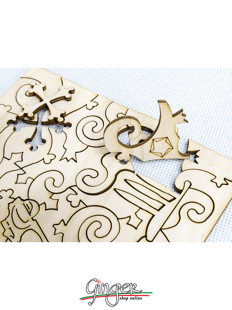 Wooden puzzle with unique and special tiles measuring 13.5 x 12.5 cm (5,3 x 4,9 in.)