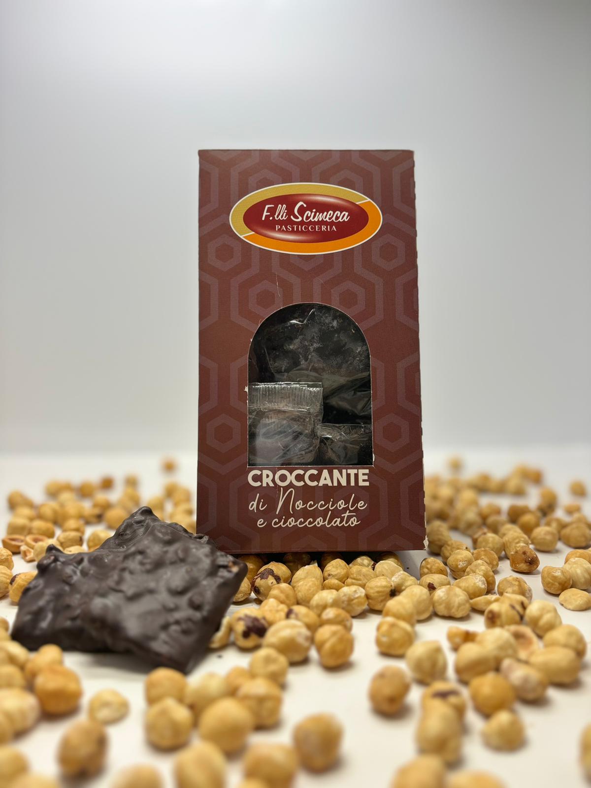 n°1 Crunchy Hazelnuts and Chocolate: bar made entirely with finely glazed chopped hazelnuts covered entirely with dark chocolate.
