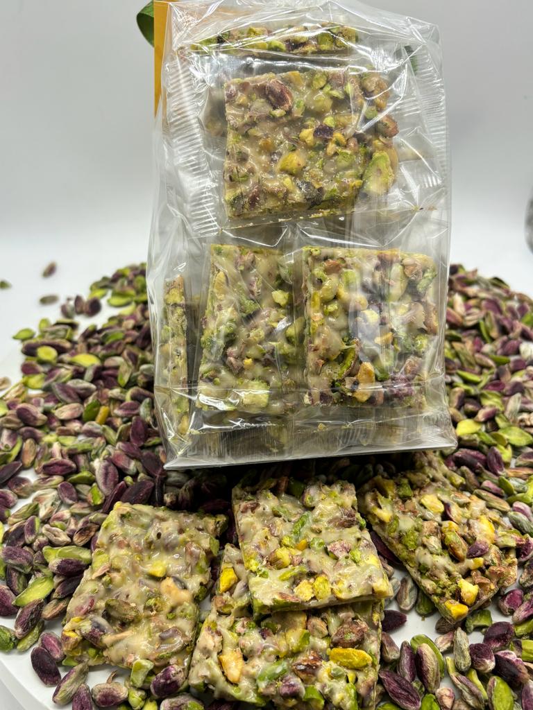 n°1 Pistachio Nuggets: bar made entirely with pistachios shelled and finely glazed.