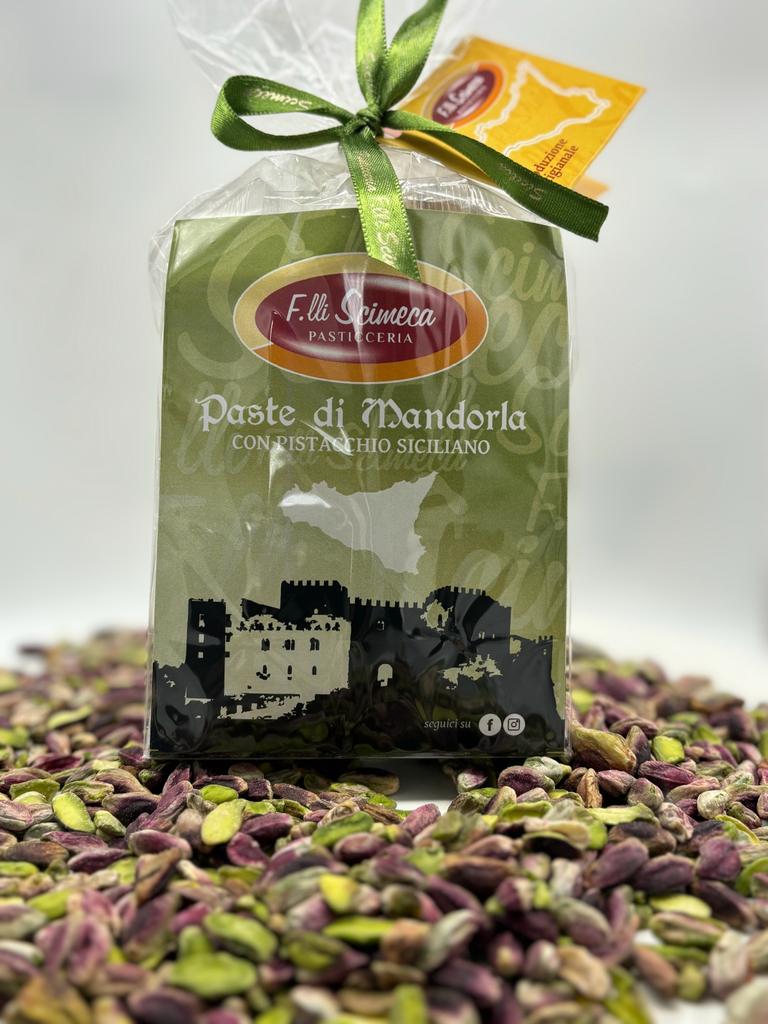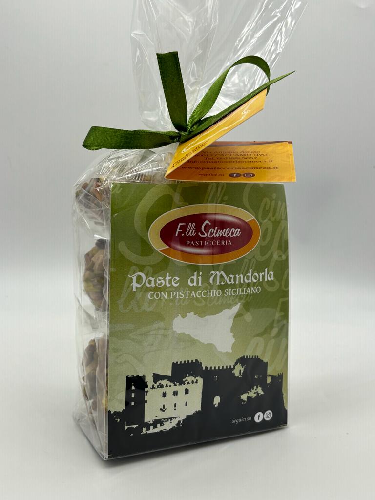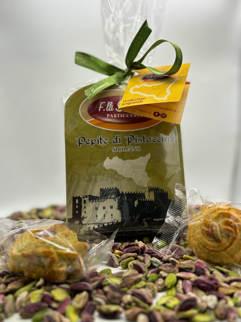No. 1 Almond Pastries with Pistachio: fine almond pastries entirely covered with whole shelled pistachios.